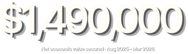 Net economic value secured on behalf of clients (since 9/2025)